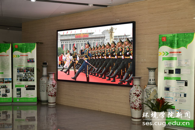 科教楼四西门大厅电子屏播放大会实况 (张学海 摄)