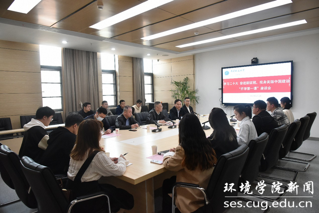 学生代表发言环节,2023届本科毕业生陈鹏飞、“张国旗班”党支部成员张萍萍、绿野仙踪协会地大观鸟兴趣小组负责人林峤涵、学生创新创业团队“炭合团队”负责人华祎梓、“积水团队”负责人邓睿、2023届博士毕业生严璐先后发言。六位同学围绕学习贯彻二十大精神、习近平生态文明思想、专业兴趣爱好、个人发展规划等积极发言。他们表示,要锤炼过硬本领,主动担当作为,用自己专业所学为美丽中国建设做出贡献。