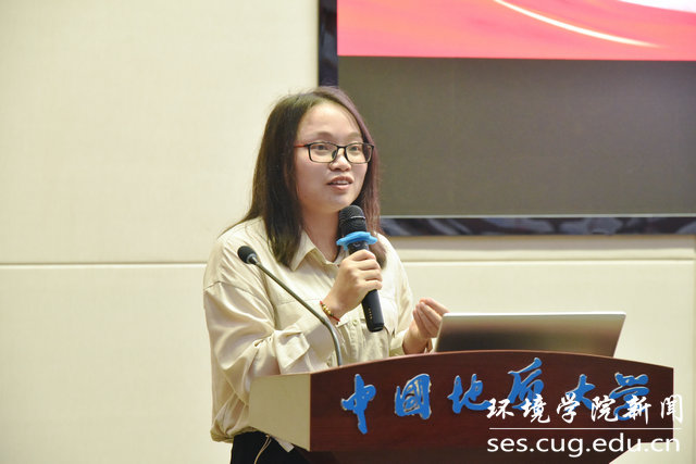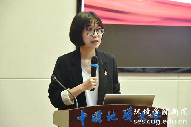 华中科技大学经济学院党支部党员王柯雅作交流,发言主题为《传承英雄精神增强支部力量引领青年发展》。