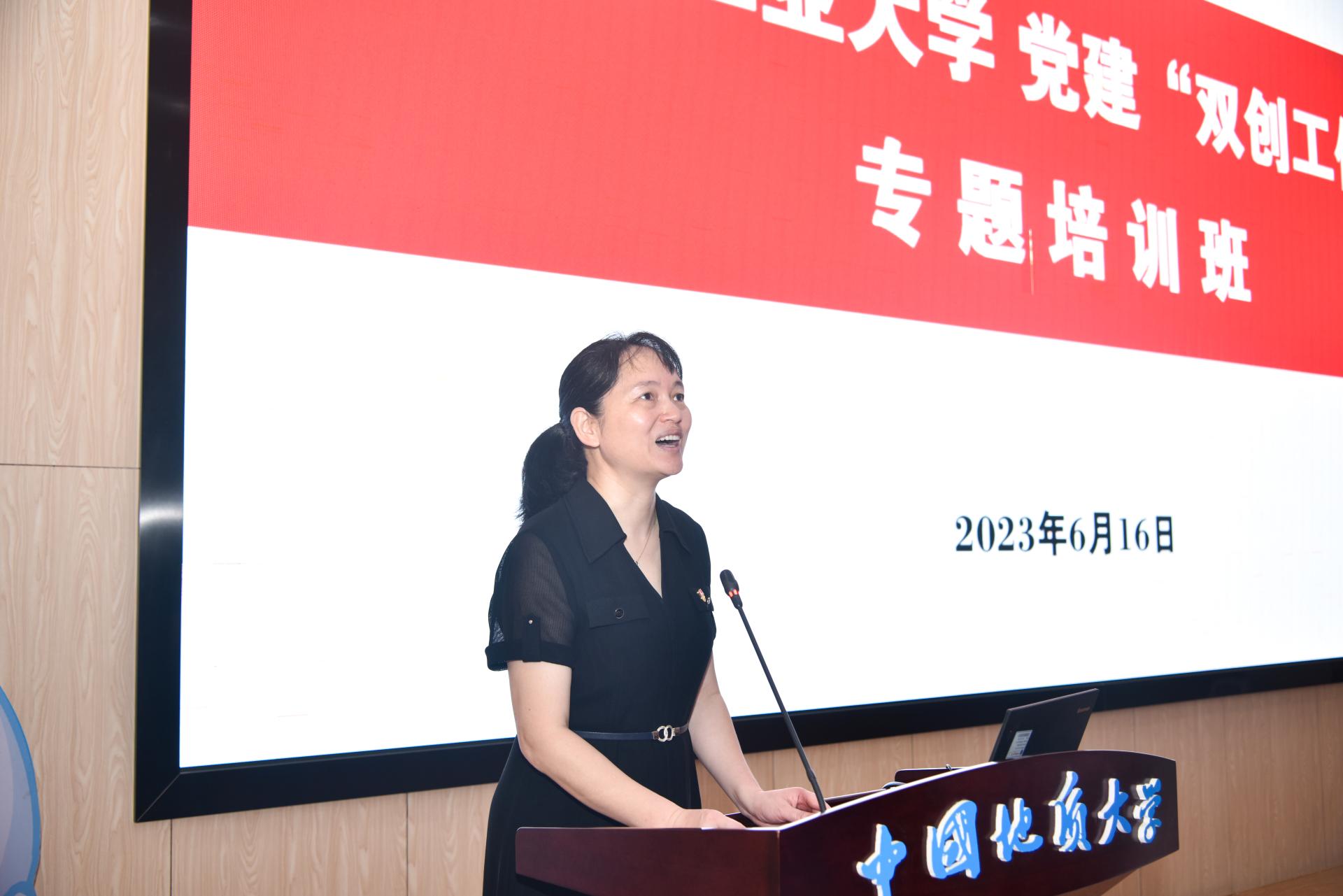 和李素矿书记表示由衷地感谢。她介绍了培训主讲人李素矿书记,指出,李素矿书记和其所在学院在党建研究、党建“双创”等方面特色明显、亮点突出、成效显著,在全国范围内都有着一定的影响力,今天我们通过互学互鉴、互联互通,共同推动党建业务双融双促双提升,在学校党建示范创建和质量创优工作取得新突破,迈上新台阶。