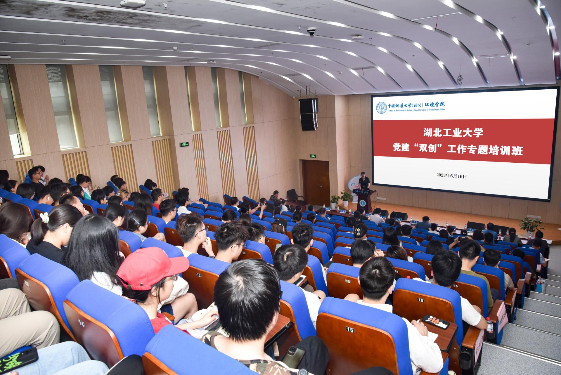 党建“双创”为例》为题,从“知”“行”“悟”三个方面讲授。在“知”方面,重点解读党的二十大精神、习近平总书记关于教育重要论述、关于党建重要讲话、《中国共产党普通高等学校基层组织工作条例》、教育部党组有关“双创”政策和“一融双高”的内涵等;在“行”的方面,以学院党建“双创”为例,重点介绍了五大抓手、培育生态环保铁军的路径与举措,即谋划“红专能优”党建育人模式、实施“张国旗班”行动计划、打造“1+6”资政育人载体、建设“美丽中国”4+N课程思政、打造水-土-气-生-环跨学科育人范式等;在“悟”的方面,结合“双创”实践与成效,畅谈了实施“一融双高”的工作思路和心得体会。他说,学院党建示范创建和质量创优工作所取得的创新性理论成果、制度成果、实践成果和特色成果,是全体师生凝心聚力、干事创业、追求卓越的汗水结晶。