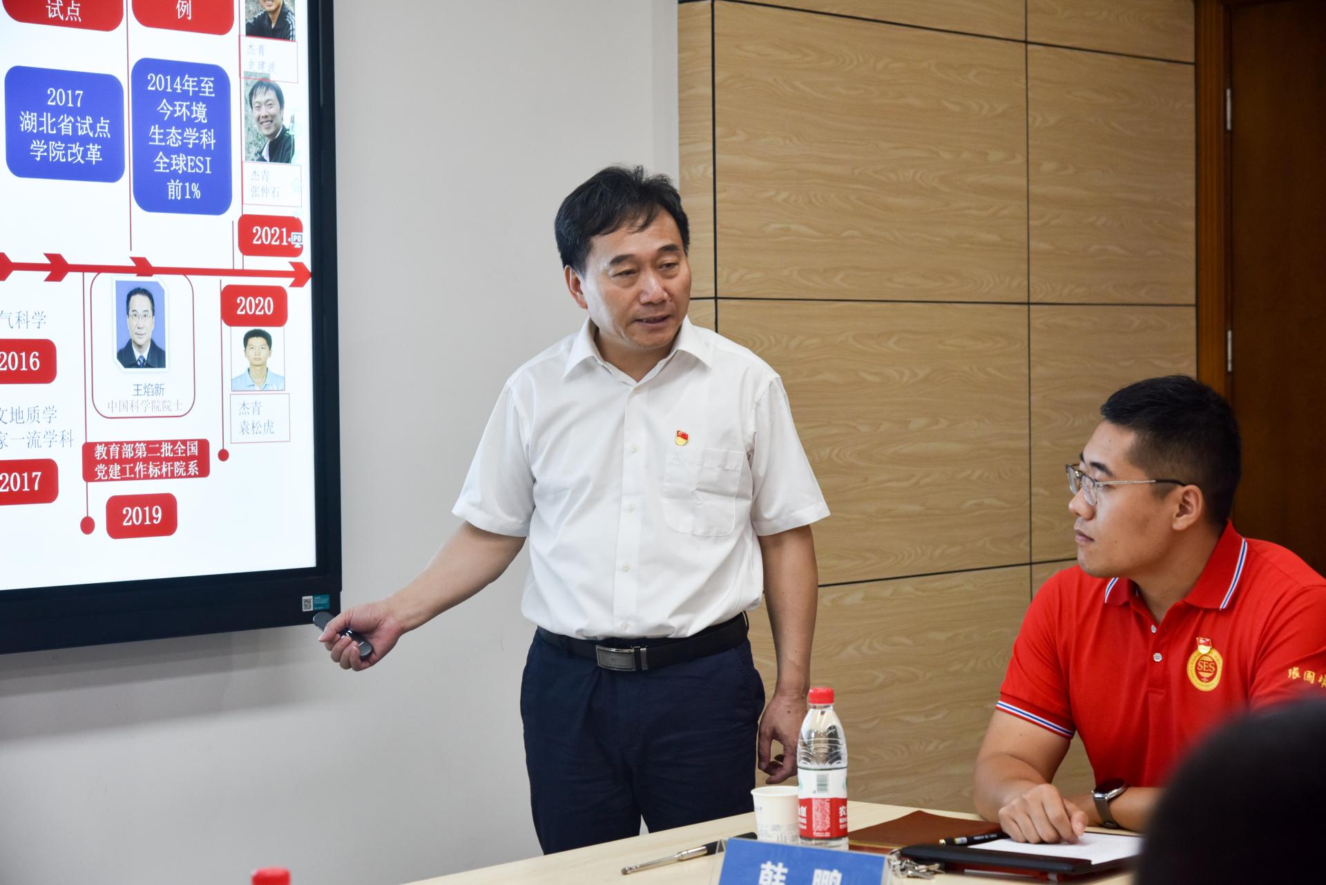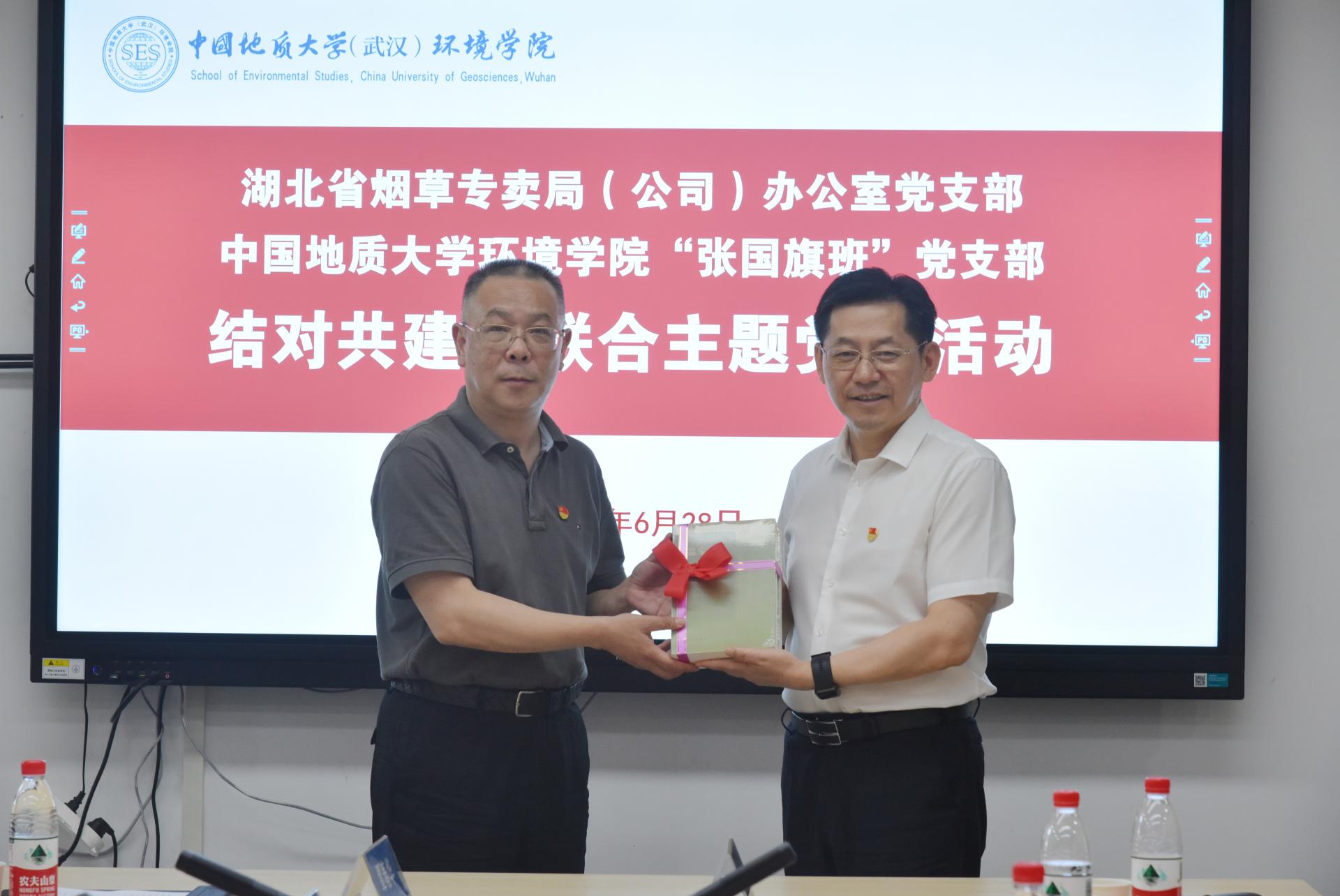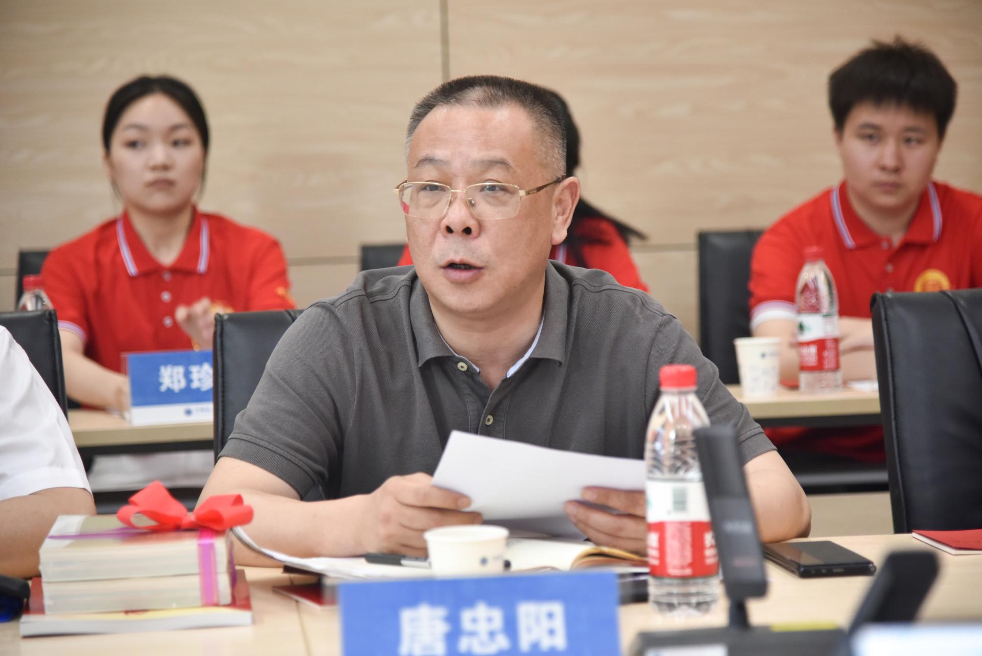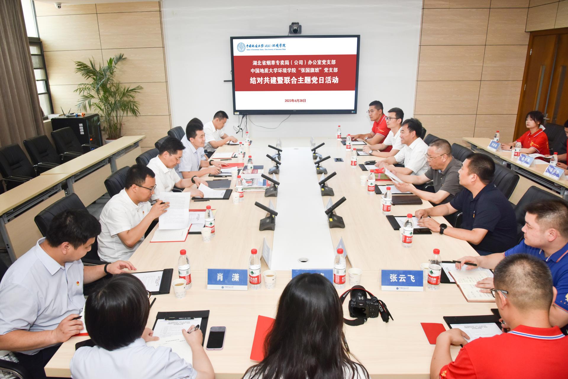 (通讯员陈俊男 摄影张学海 严丽莎 编辑严丽莎)2023年6月28日上午,在科教楼四308会议室,湖北省烟草专卖局(公司)办公室党支部与无码动漫 “张国旗班”党支部开展结对共建暨联合主题党日活动。湖北省烟草专卖局(公司)党组书记、局长、总经理顾厚武,办公室支部书记、办公室副主任许名臣,组织委员、办公室副主任王百雁,纪检委员、副调研员韩李庆,宣传委员刘冠华,支部党员覃春华、肖潇、吴婕一行来无码动漫 进行党建“双创”工作专题交流,并与无码动漫 “张国旗班”党支部开展结对共建暨联合主题党日活动。我校党委副书记、纪委书记唐忠阳,校党委组织部副部长张建华,学院党委书记李素矿,学院党委副书记王海锋,学生党建辅导员陈俊男、“张国旗班”党支部书记韩鹏以及学生党员代表等参加本次活动。许名臣主持本次活动。